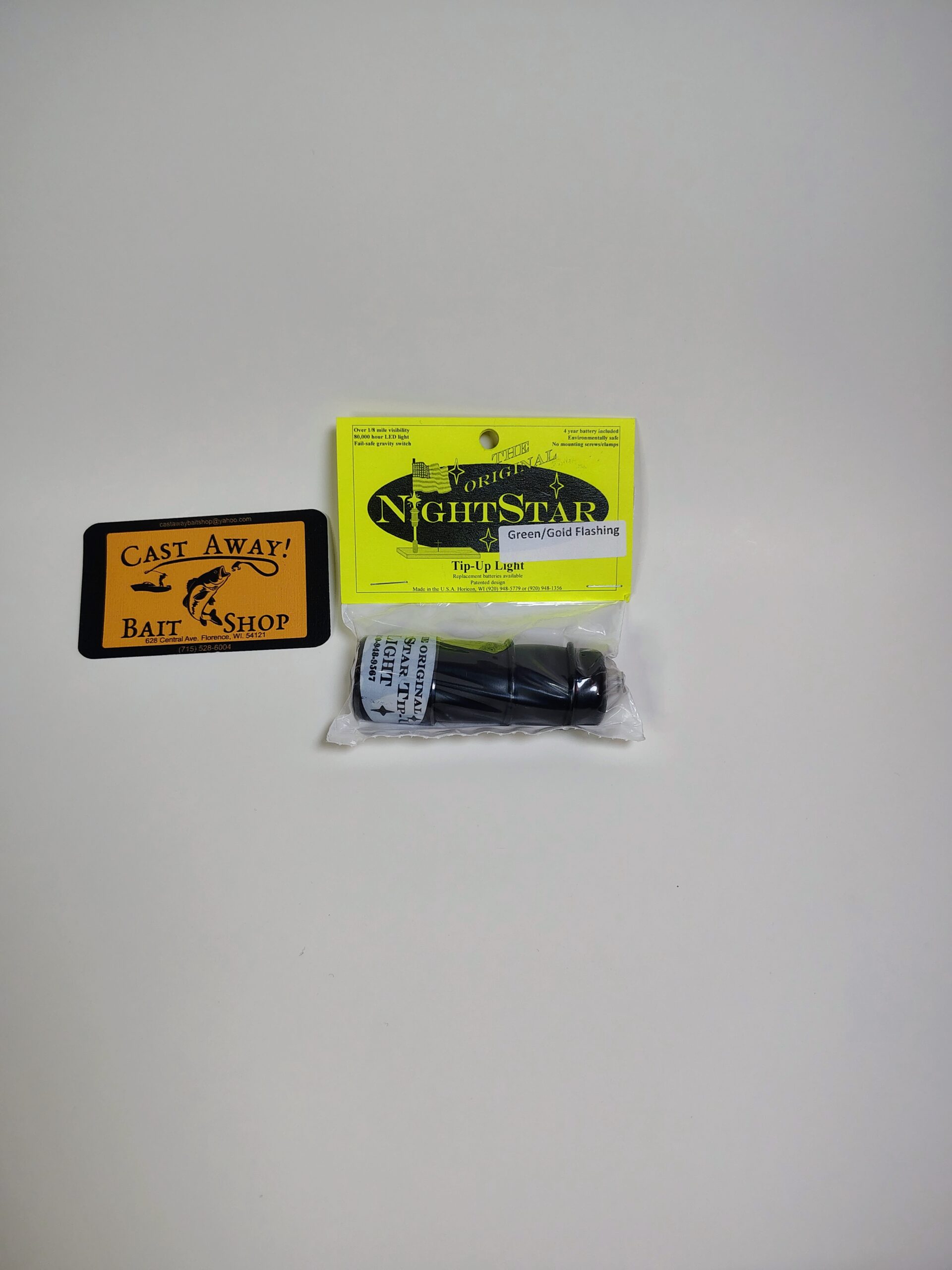 The original NightStar tip-up light with green and gold flashing LED. Made in the USA in Horicon, Wisconsin.